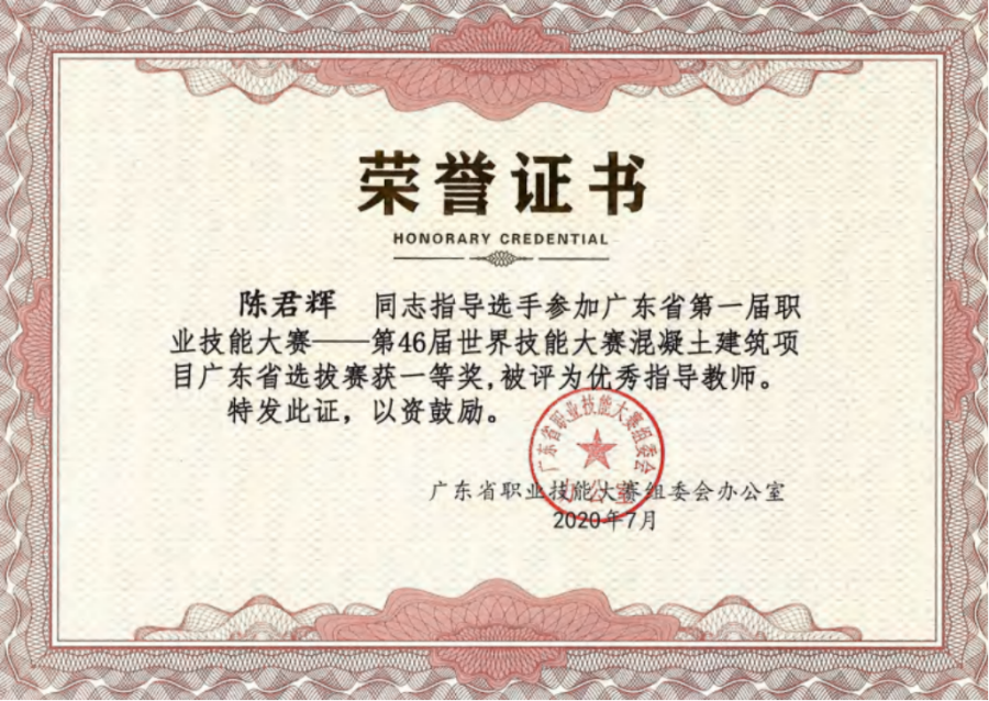 21 广东省第一届职业技能大赛优秀指导教师