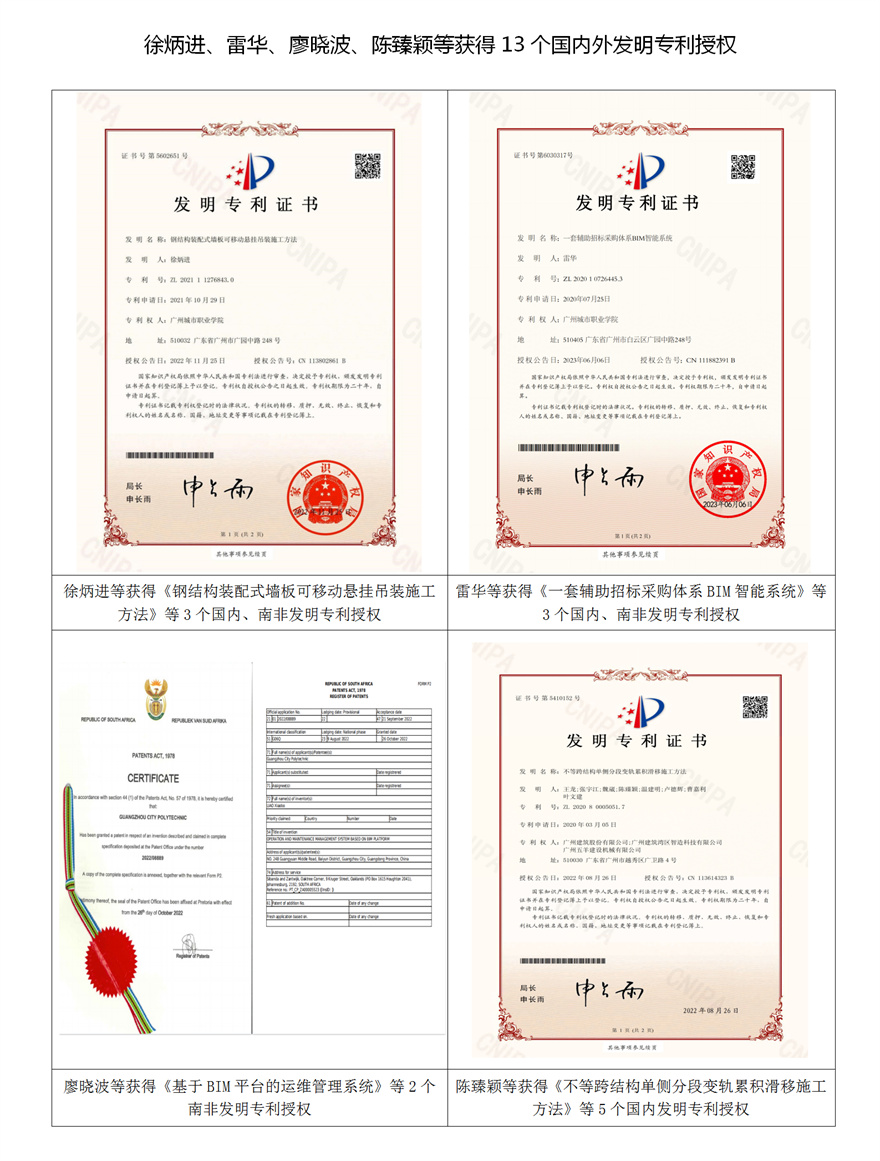 徐炳进、雷华、廖晓波、陈臻颖等获得13个国内外发明专利授权