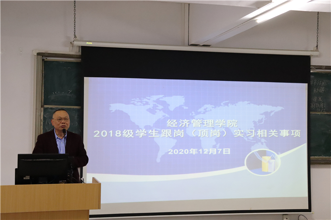 最后,唐新国院长作总结发言,再次强调了跟岗(顶岗)实习期间的纪律和安全问题,一定要按要求及时完成所有的实习任务,并举一些自己多年从事实习就业工作的经典案例,勉励即将跨入社会的同学们在未来人生道路上一帆风顺,学业、事业双丰收!(文/经济管理学院 邱宇恒  图/创新创业学院 崔袁廙