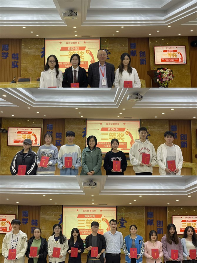 经过数轮激烈比拼,以2024级法律事务班陈萤、张丽和2024级大数据与会计班曾秀艺组成的“人民当家作组”队获得团体一等奖,另外决出团体二等奖2队和团体三等奖3队。通过竞赛,普及了民法知识,践行“以赛促学、以赛促教、以赛促赛”的教学模式;不仅考验参赛者法律知识的掌握程度,更考验选手的心理素质和反应速度。