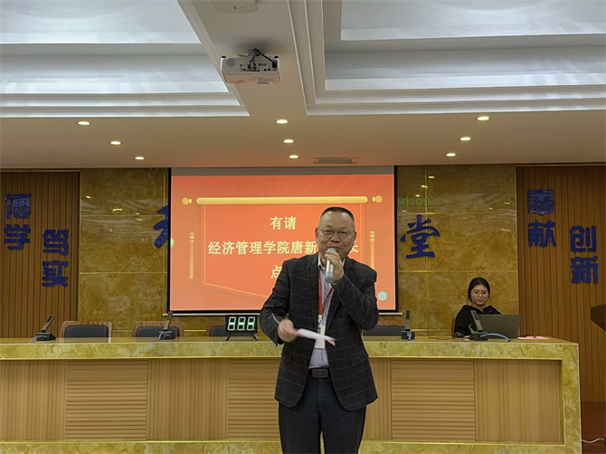 为提升学生的法治意识,培养学生的法律素养,丰富校园文化生活,近日,由经济管理学院主办,法律事务教研室承办的“法”润心 “典”亮生活法律知识竞赛决赛在教学楼415报告厅举行。学院唐新国院长、刘春英副院长、邱宇恒老师,法律事务教研室陈国才、王月老师等出席了此次活动。