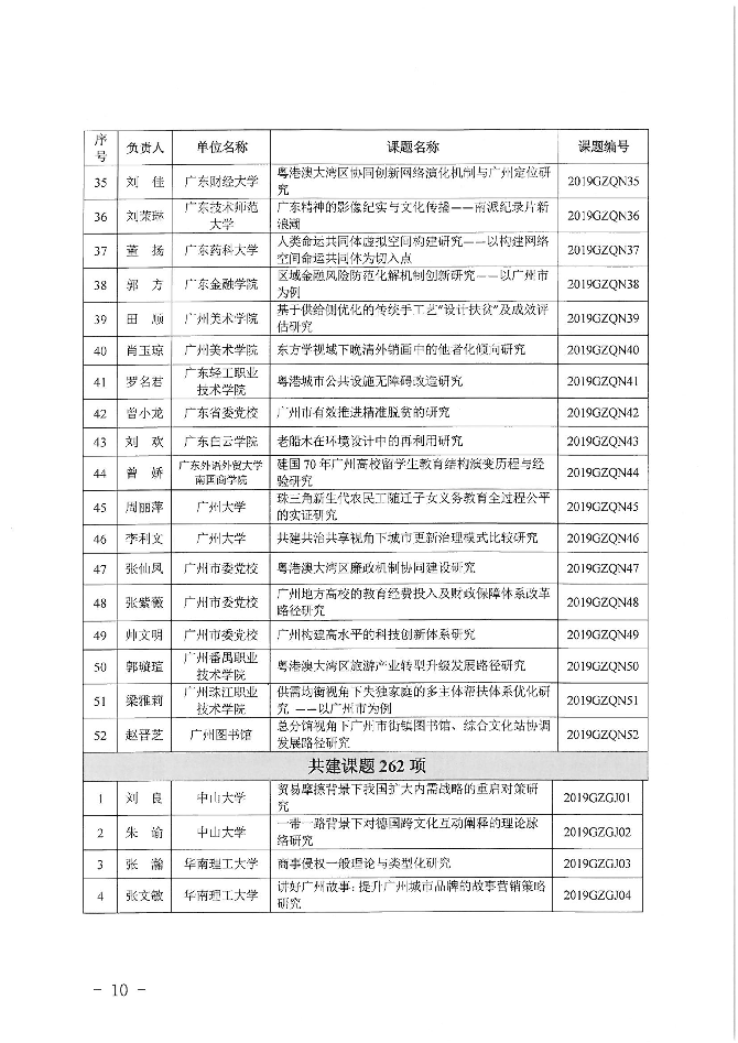 广州市哲学社会科学“十三五”规划2019年度课题立项通知