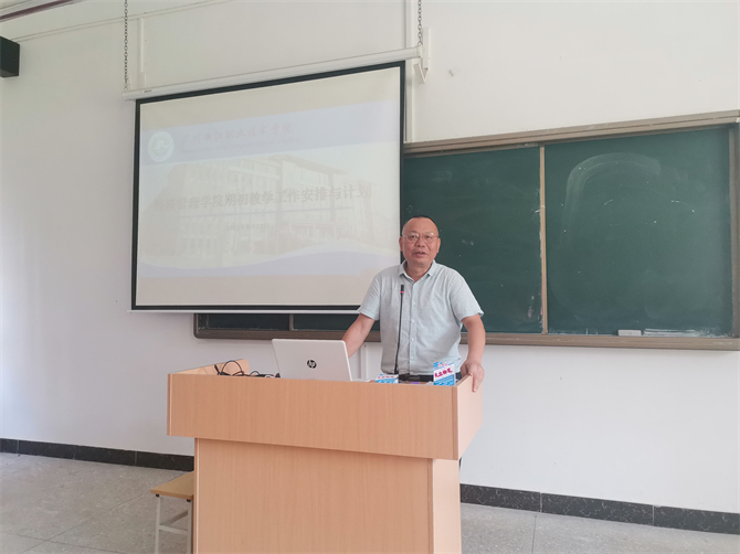 接着,学院教学助理吴丽婷老师对本学期期初教学工作计划与安排进行了详细布置,围绕日常教学、教学改革、专业活动或竞赛、教科研项目及其他事项进行了详细讲解,着重强调了日常教学过程中教学材料存在的问题及整改措施和教学材料(如课程标准、授课计划、教案和教学课件)的编写制作等。并要求各位老师要按时授课,及时完成好相关的教学材料,确保学院日常教学工作的顺利进行,避免出现教学事故。希望新老师多向骨干教师学习,提升教学质量。