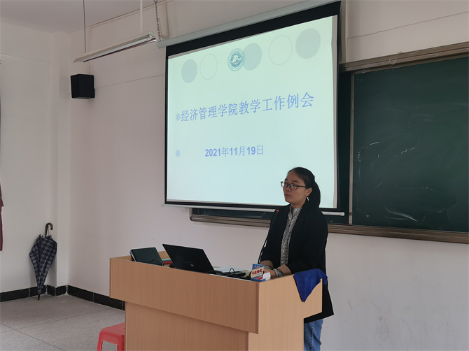 2021年11月19日下午13:00时,经济管理学院在教学楼214多媒体教室召开期中教学工作会议,学院全体教职工参加了本次会议,会议由经济管理学院唐新国院长主持。