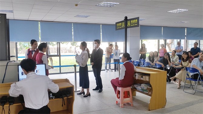 唐丝微老师结合诵读记忆的方式,使学生掌握安检岗位人员的具体话术,强化学生对安检岗位人员工作职责的认知。理论讲解完毕后,她通过分组教学进行了实操演练,学生们借助角色扮演、实地模拟和老师现场指导示范,强化了对理论知识的理解和应用;运用“突发情况”穿插,培养学生灵活运用所学知识,处理问题的能力,实现了理实一体化教学的目的。学生们纷纷表示,唐丝微老师的课堂生动有趣,令人耳目一新,整个教学步骤环环相扣、条理清楚、重点突出,为大家呈现了一堂精彩的示范课。
