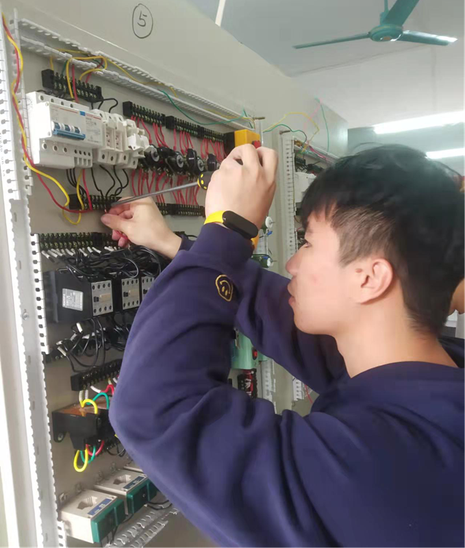 竞赛现场,各参赛选手根据电路图纸要求安装一个具有过载保护、短路保护、按钮联锁、接触器联锁的正反转电机控制线路。面对复杂的操作平台,选手们熟练地使用手中的工具,拧螺丝、接线路、绕电线,一步一步完成竞赛要求的控制电路。经过近一个小时的激烈角逐,竞赛渐渐接近尾声。最终,竞赛评奖以实操成绩为依据,以分数高低进行名次排序,评出一等奖、二等奖、三等奖获得者。