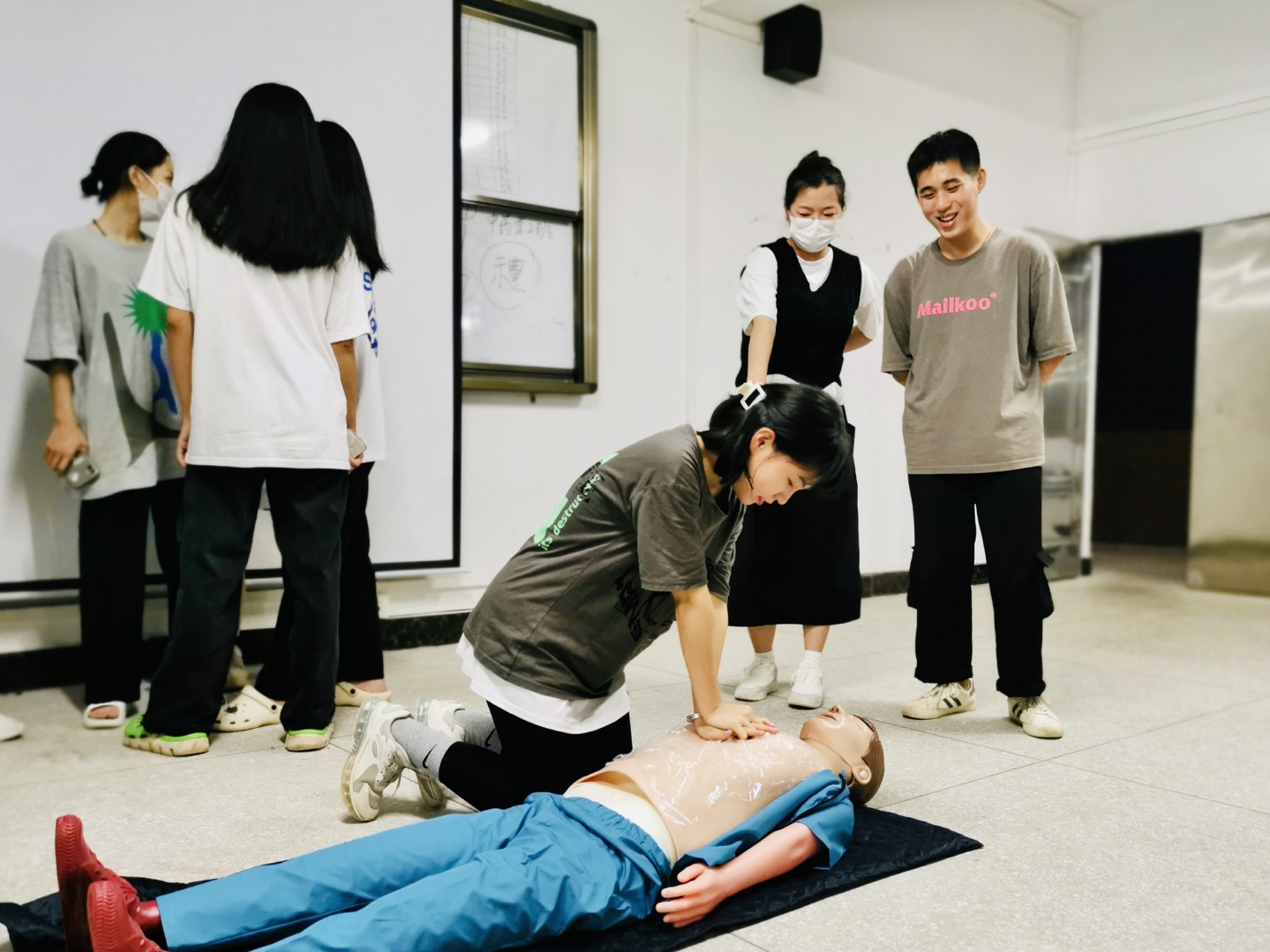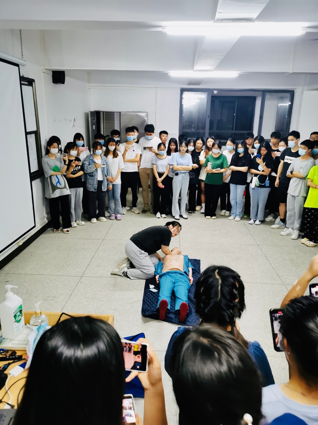 为普及常用急救技能, 6月9日晚,医药健康学院面向全校在教学楼515教室开展心肺复苏技能培训。各学院学生积极参加。