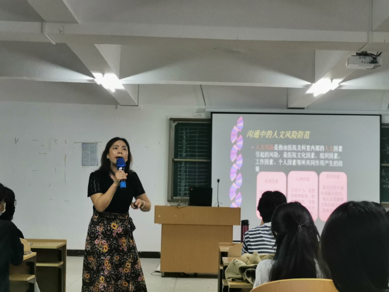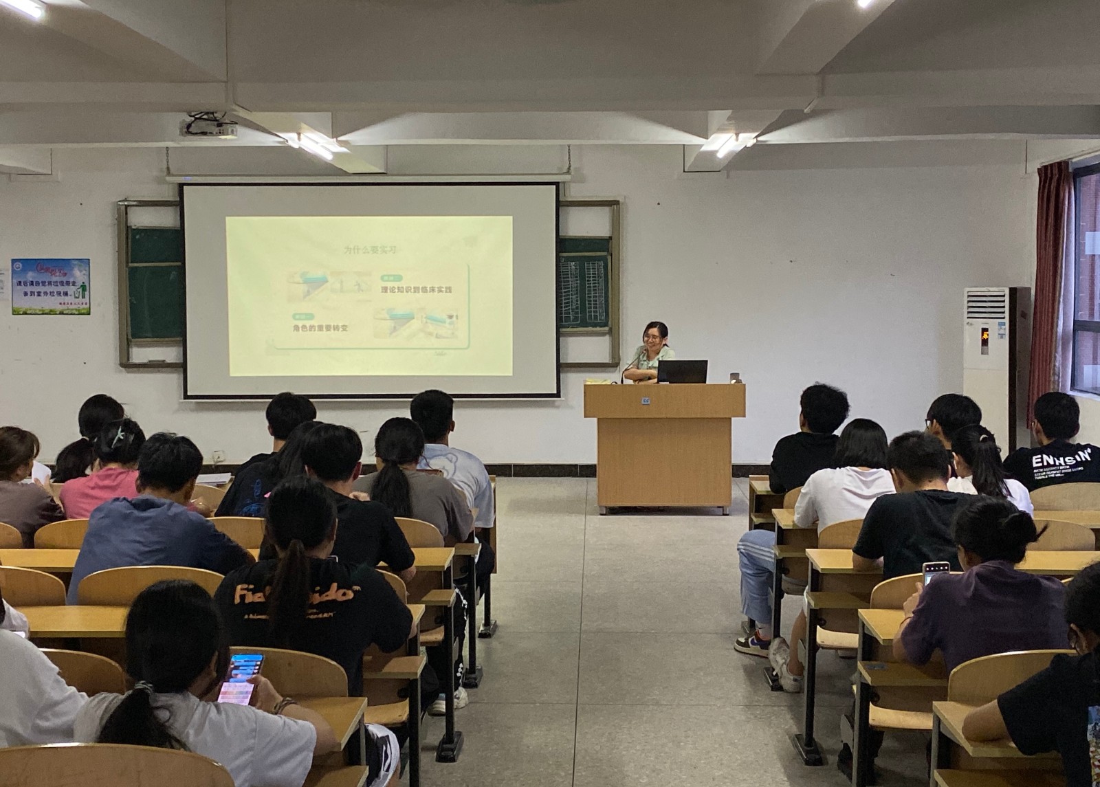 第一场次中,辅导员叶柱梁老师向学生强调日常管理和实习纪律要求,王选琴老师详细讲解临床护理实习过程中注意事项以及实习安全问题,吕立珍院长从实习的各个方面给同学们做了生动案例的分享,并告诫同学们要牢记勤、敬二字,做好就业的第一步,在实习的过程中,要时刻注意安全。最后,吕院长祝愿同学们实习顺利,不断成长。