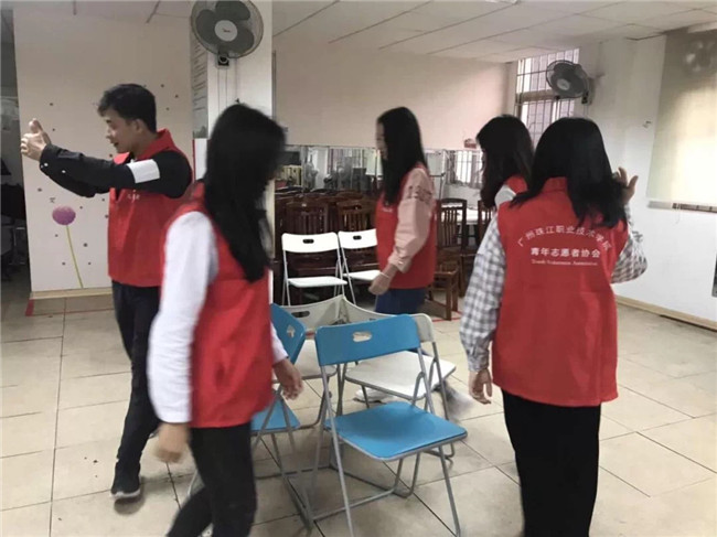 首先,志愿者们与在场的社工们进行了抢椅子游戏,随后,与社工们一同商量以后的志愿服务活动以及初步的规划。在活动中,志愿者们与社工开展了“大轰炸”游戏,这个游戏是大家手牵手围成一个圈画画,“大轰炸”游戏主要考验团队合作性以及默契程度。
