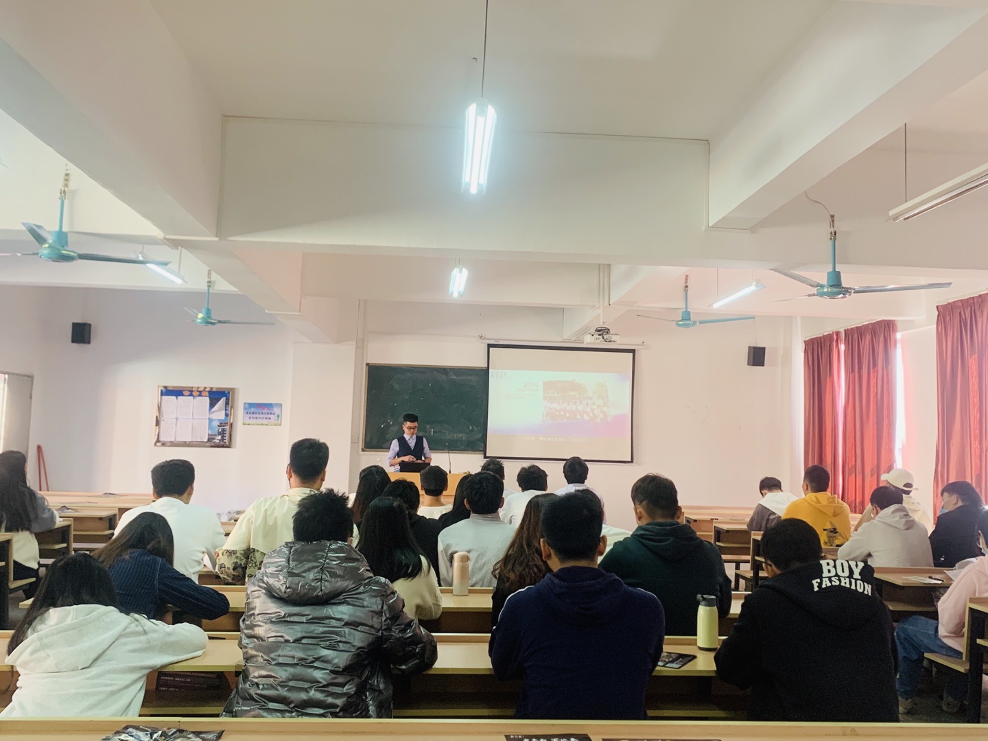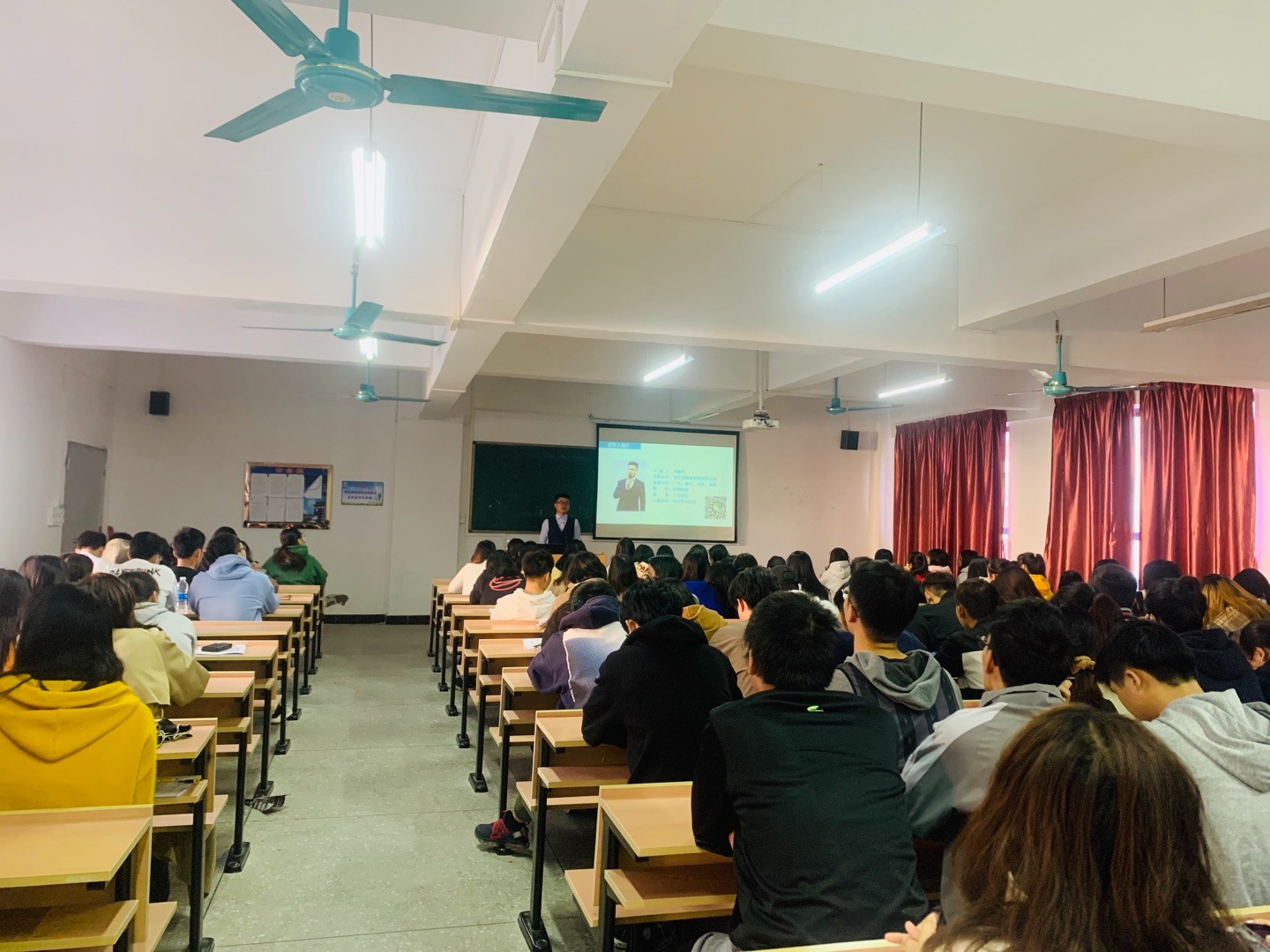 广州市青花瓷健康管理有限公司工作人员向学生宣传公司,讲解目前公司的情况、招聘岗位和要求。会后,有意愿的学生与企业积极沟通。