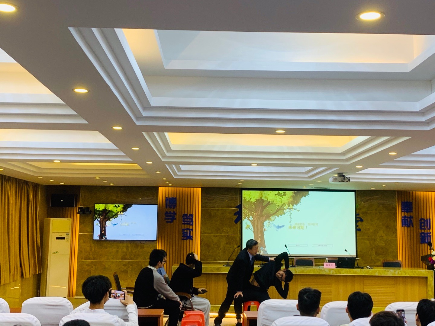 张光正教授围绕“康复是什么,康复专业的毕业生应具备哪些能力,怎样学好康复,康复专业的培养目标、课程设置、实践基地、设备介绍”等多个方面进行讲解。他向同学们设问“为什么会有康复”,引出康复的基本概念,以鲜明的案例向同学们讲解康复的来源。在现代社会经济快速发展、文化生活不断提高的前提下,人们已不再仅仅满足于治病保命的低需求,而把能够过上有意义、有质量的生活作为更高的追求目标。以改善和提高残疾者生活质量为宗旨的康复医学就成为人类社会的共同需求。张光正教授结合我国康复医学的发展和现状引导同学们明确就业方向。此外,他提出康复毕业生应具备物理治疗、作业治疗方面的技术能力,康复工程、心理治疗方面的技术能力,言语治疗、吞咽治疗方面的技术能力,针灸、推拿、文娱治疗、园艺治疗等方面的技术能力;鼓励同学们要学好专业知识,平时要注意带着兴趣去学习专业知识。张光正教授认为兴趣是最好的老师!专业知识本身就很有趣!他引导同学明确学习目标,完成当天功课、完成本学期功课、取得毕业证和找到满意工作以及长远的职业规划。在学习的过程中要有信心、会用心、有耐心,做到上课认真听、课后仔细记、临床扎实用。在日常学习中要集中精神、了解自己的学习状态、拒绝拖延;鼓励同学们成为适应综合医院康复科、康复中心、工伤康复中心、儿童康复机构、残疾人康复中心、康复保健等康复机构需要;从事物理治疗、作业治疗、言语治疗、传统康复治疗及相关工作岗位的高素质高技能型人才。在进行学术报告过程中,张光正教授还注重实践讲授。他亲自在现场给学生进行康复治疗示范。同学们认真聆听,积极互动,认真记录,对康复知识非常有兴趣。