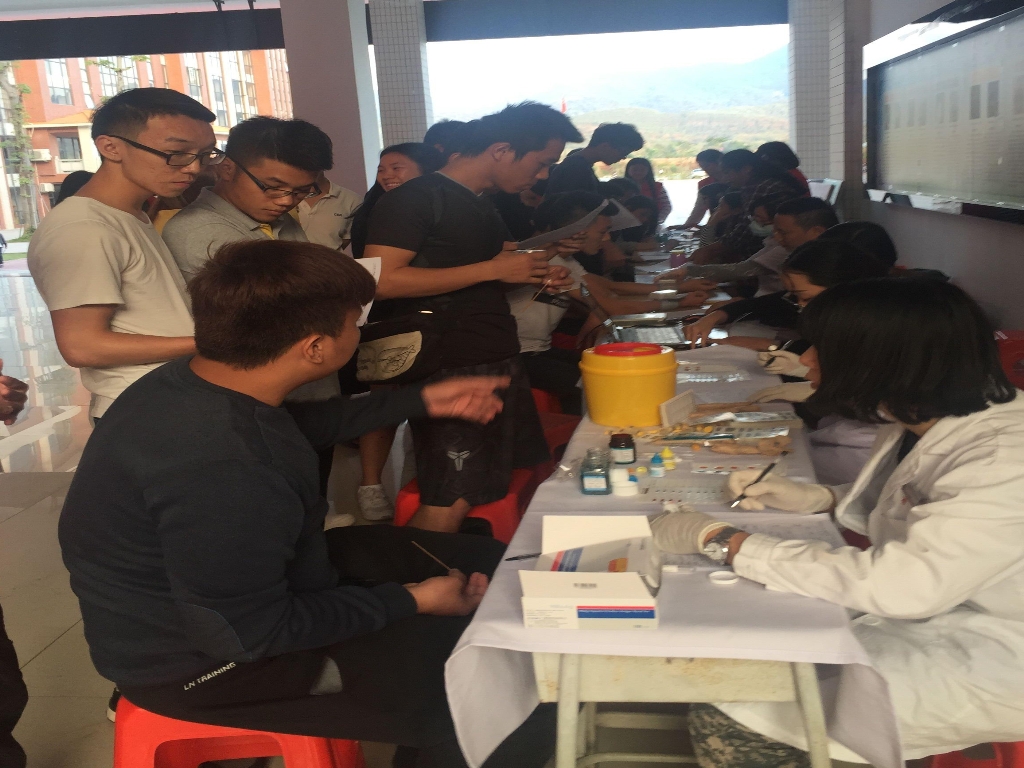 2016年11月3日,我校青年志愿者协会在教学大楼大厅组织献血活动,全校师生纷纷踊跃参与。
