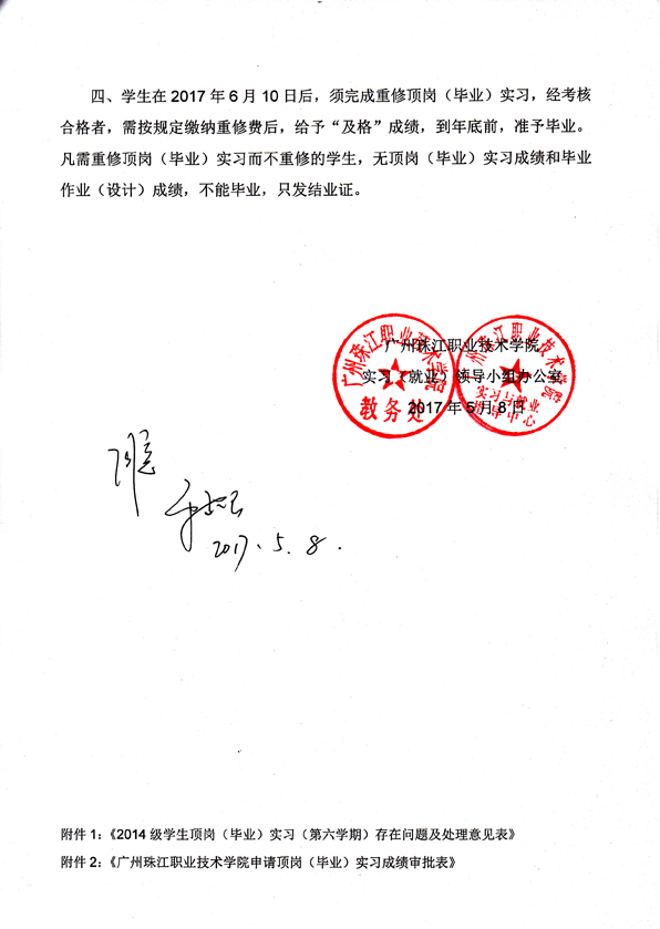 关于2014级学生顶岗(毕业)实习存在问题的处理意见
