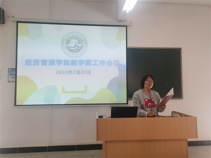 新学期,新气象。2023年2月23日上午,经济管理学院在教学楼217教室召开新学期教学工作会议。会议由院长唐新国副教授主持,学院全体教职工参加了会议。