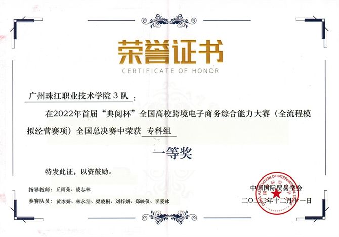 近日,从中国国际贸易学会传来喜讯:我校师生在2022年首届“典阅杯”全国高校跨境电子商务综合能力大赛全国总决赛中获得佳绩。由经济管理学院18名学生组成的3支代表队分获一、二、三等奖,丘雨苑、凌志林等6位老师获得“优秀指导教师奖”,学校荣获“最佳组织奖”。