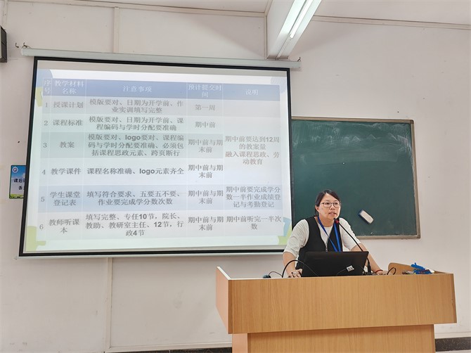 会上,院长助理吴丽婷老师通报了学院近段的教学运行和校内外竞赛情况及教科研工作进度。对即将开展的期中教学检查准备工作进行了部署,对学校近期要完成的重点工作作出了安排,要求各位老师按要求及时完成教学材料等各项教学工作。