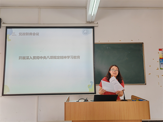 会议传达学习习近平总书记关于开展深入贯彻中央八项规定精神学习教育的重要讲话和重要指示批示精神,中央、省委教育工委以及学校党委有关部署要求,并就做好学院党总支学习教育工作提出意见。会议指出,全体教师肩负着为党育人、为国育才的神圣使命,必须以更高的政治站位,深刻领悟加强党的作风建设的极端重要性以及违反中央八项规定精神的严重危害性。