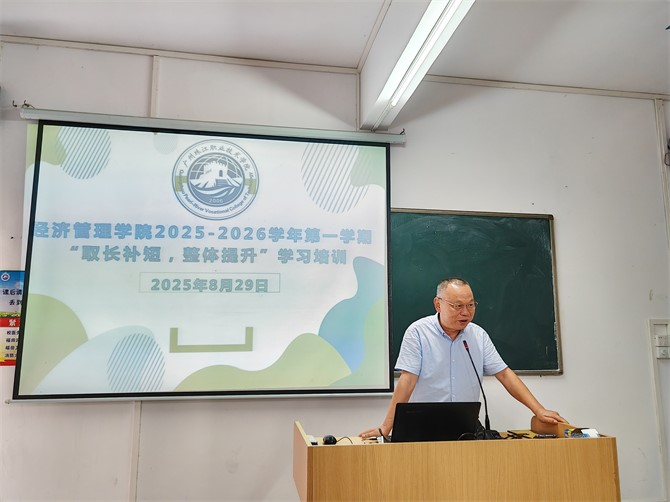 新学期,新气象。2025年8月29日下午,经济管理学院在教学大楼217教室举行2025年秋季学期教师培训活动。本次活动由学院院长唐新国副教授主持,全体教职工参加。