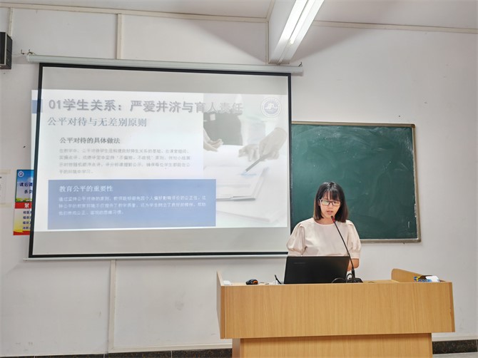 随后,学校督导员、电子商务专任教师丘雨苑以《守教学质量底线 追五金建设高线》为主题进行分享。她结合自身教学实践,从教学方法、课堂把控及学生关系处理三个方面展开交流,强调教学应注重实用导向与技能传递,推行模块化教学与案例应用。此外,丘雨苑老师还分享了暑假期间参加高职电商专业带头人“五金”建设及国际化视野提升访学研修班(国培)的心得体会。与会教师认真聆听,积极学习。
